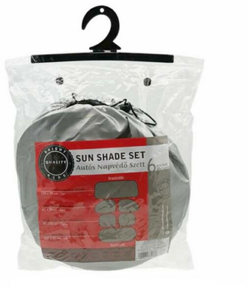 Autós napvédő szett tárolótasakban – 1 db 150x70 / első szélvédőre – 1 db 100x50 / hátsó szélvédőre – 2 db 65x38 / első oldalablakra – 2 db 44x36 / hátsó oldalablakra